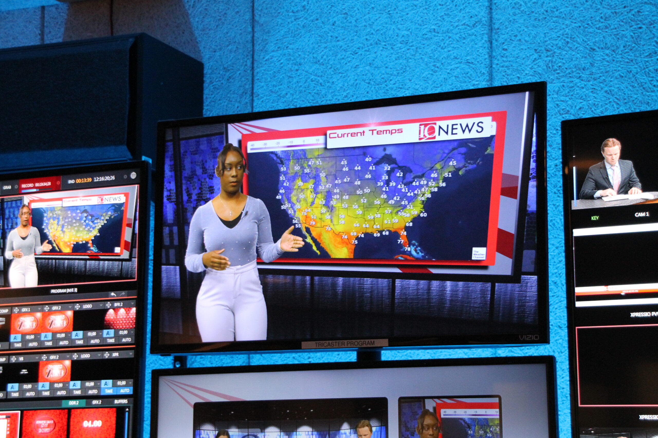 Students working at TV-10 are Journalism and Mass Media majors.