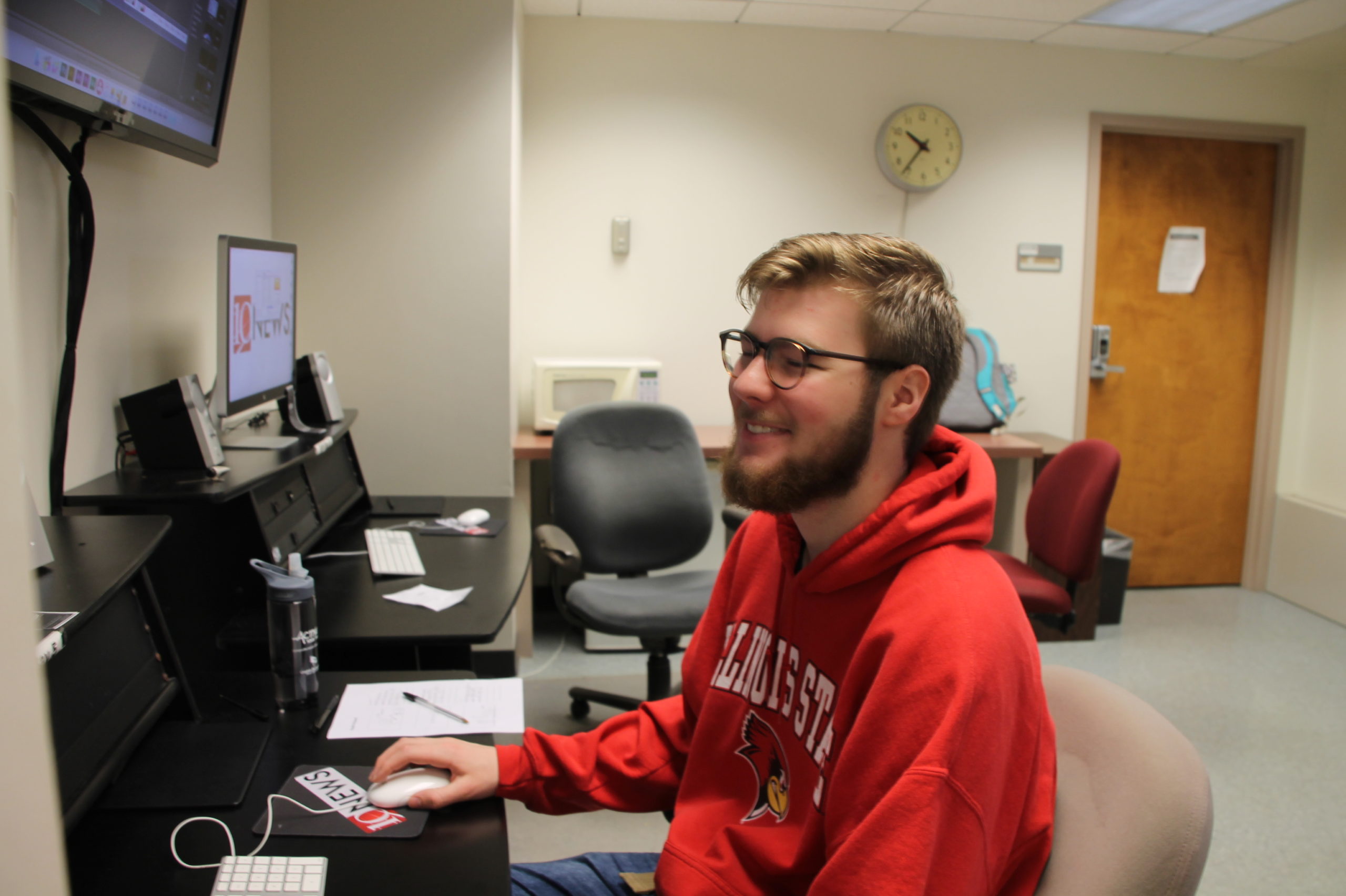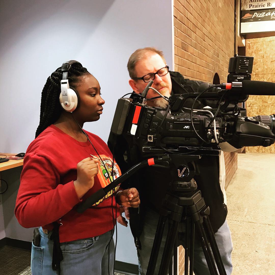 At the 200-level (COM 263 Advanced TV Production and COM 267 Broadcast News II), students are the frontline of TV-10’s newsgathering, as reporters and photographers in the field. TV-10 crews cover stories all over campus and all around the Twin Cities of Bloomington and Normal.